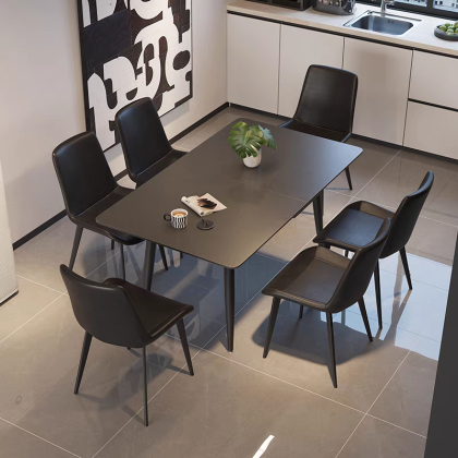 ACEPTAR COOKIE意式极简纯黑色哑光岩板可伸缩长桌 黑色哑光桌脚 ME-131