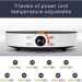 • 【Potente】La placa de inducción tiene 2.000 Watios de potencia que pueden ajustarse con sus 9 niveles; seleccionando la potencia (de 200 a 2000W) o la temperatura de cocinado en ºC (de 60 a 220 ºC) úsela de la forma en que le sea más cómoda.
